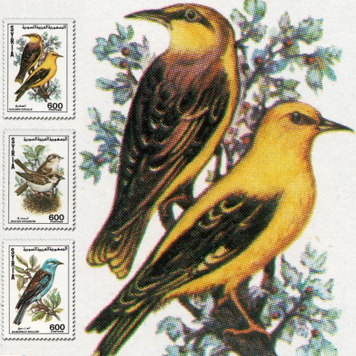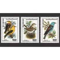 Seria, na znaczkach której widnieją ptaki: wilga, wróbel i kraska.