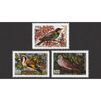 Seria, na znaczkach której widnieją ptaki: żołna, szczygieł i turkawka.