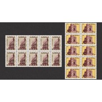 Seria we fragmentach arkuszy po dziesięć znaczków, na których widnieje starożytna architektura z rejonu Syrii, kolejno: