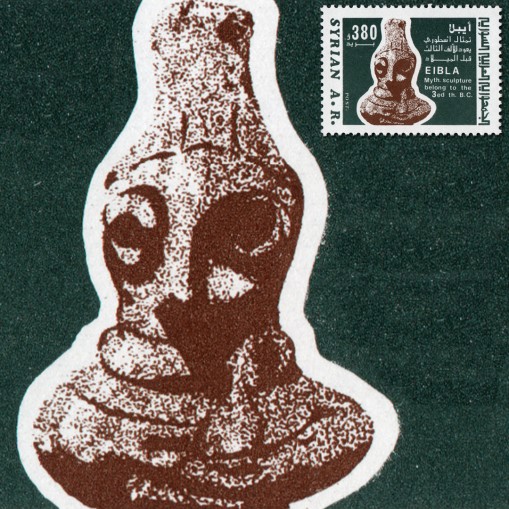 Znaczek obiegowy, na którym widnieje prehistoryczna figurka ze starożytnego miasta Ebla pochodząca z około 3000 roku p.n.e.
