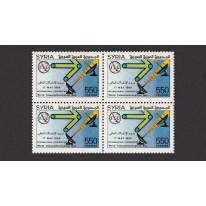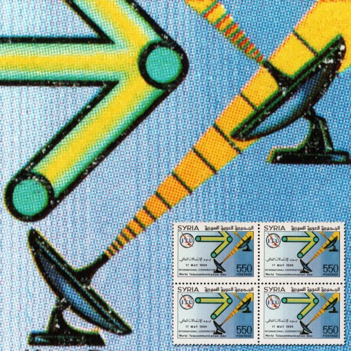 Znaczek w czwórce upamiętniający Światowy Dzień Telekomunikacji.