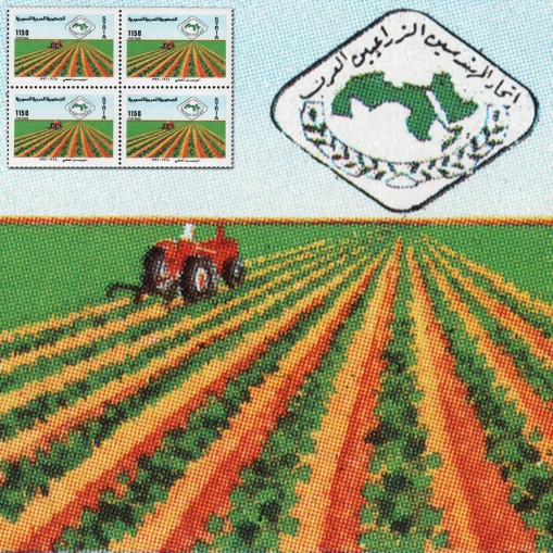 Znaczek w czwórce upamiętniający 25-lecie arabskiego związku rolników.