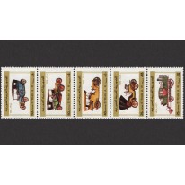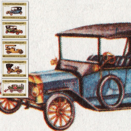 Seria w pasku, na znaczkach której widnieją wczesne samochody, kolejno: pojazd parowy z 1830 roku, Benz z 1899 roku, Rolls-Royce z 1903 roku, Mercedes z 1906 roku i Austin z 1915 roku.