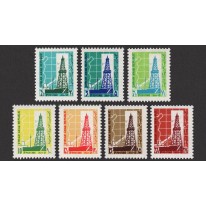 Seria obiegowa, na znaczkach której widnieje wieża wiertnicza wydobywająca ropę naftową.