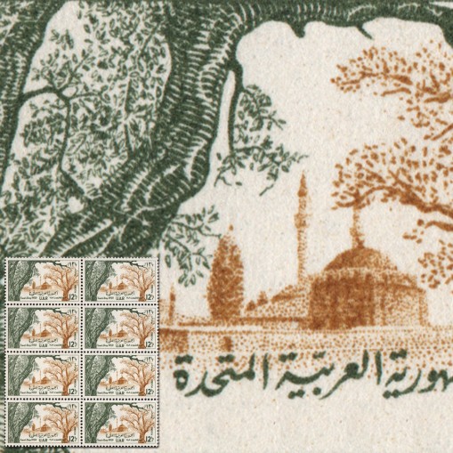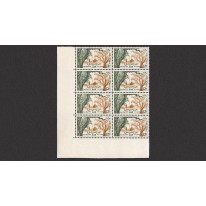 Znaczek we fragmencie arkusza liczącym osiem walorów upamiętniający Dzień Drzew.