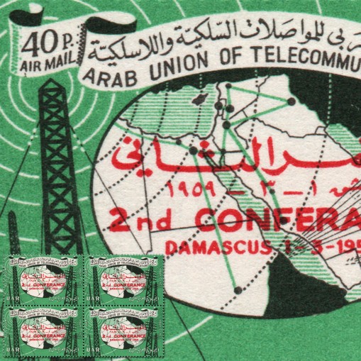 Znaczek w czwórce wydany pierwotnie wcześniej tego samego roku z okazji szóstej rocznicy powstania Arabskiej Unii Telekomunikacyjnej, tym razem z nadrukiem upamiętniającym drugą konferencję w Damaszku.