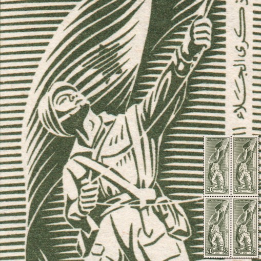 Znaczek w czwórce upamiętniający 15. rocznicę wycofania się z Syrii wojsk brytyjskich i francuskich.