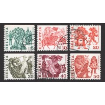 Kasowana seria obiegowa, na znaczkach której widnieją tradycyjne święta ludowe z różnych części Szwajcarii, kolejno: