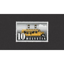 Znaczek, na którym widnieje szwajcarski autobus pocztowy.