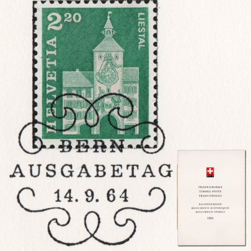 Na znaczku widnieje wieża Thomasturm i brama Obertor w mieście Liestal.