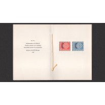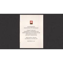 Czyste znaczki w folderze prezentacyjnym pierwszego dnia obiegu. Są to walory wydane wcześniej tego samego roku jako znaczki emisji EUROPA, tym razem z nadrukami upamiętniającymi europejską konferencję poczty i telekomunikacji w Montreaux.