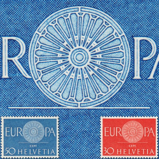 Znaczki tej emisji mają rozpoznawalny wśród filatelistów dizajn koła od rzymskiego dyliżansu pocztowego, będący projektem fińskiego grafika (Pentti Rahikainen). 19 szprych koła odpowiadało liczbie krajów zrzeszonych wówczas w CEPT, a samo koło stanowi literę „O” wyrazu EUROPA.