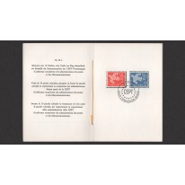 Kasowane grzecznościowo znaczki z cyklu EUROPA w folderze prezentacyjnym pierwszego dnia obiegu.