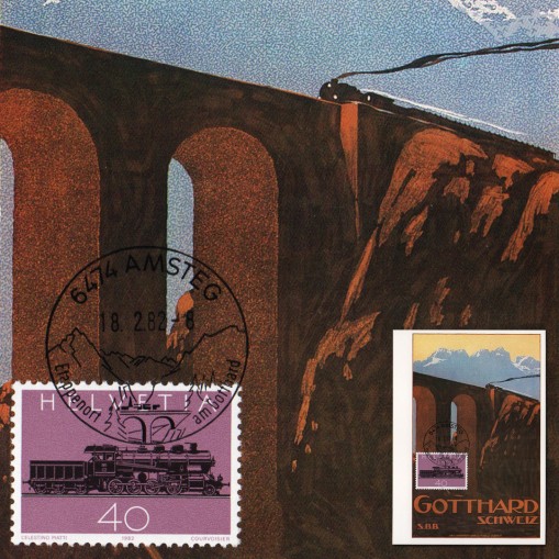 Kolej Gotthardbahn Wiadukt Alpy Plakat