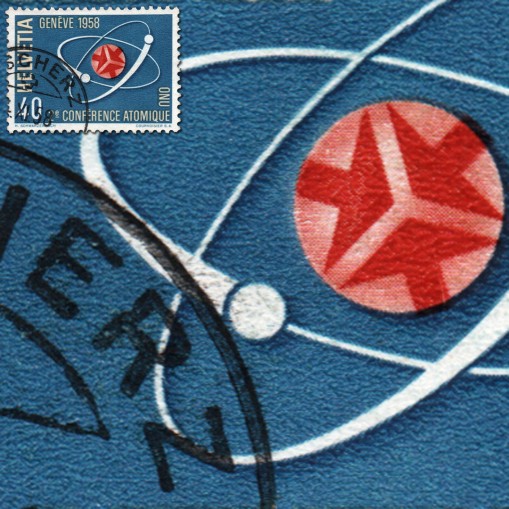 Kasowany znaczek upamiętniający konferencję atomową Organizacji Narodów Zjednoczonych, która odbyła się w Genewie.