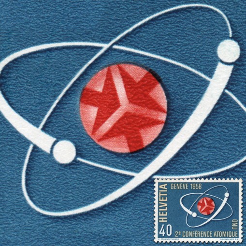 Znaczek upamiętniający konferencję atomową Organizacji Narodów Zjednoczonych, która odbyła się w Genewie.