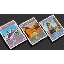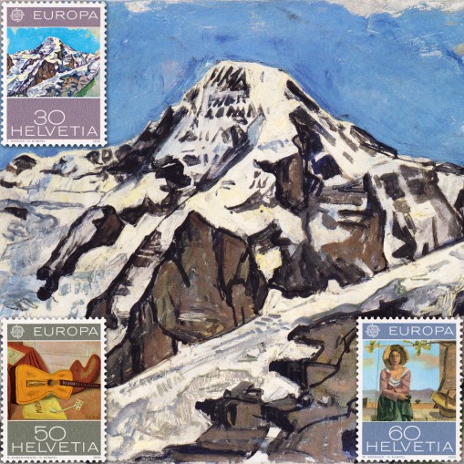 Na znaczkach przedstawiono reprodukcje obrazów malarzy szwajcarskich, kolejno: