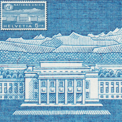 Na znaczku przedstawiono Pałac Narodów Zjednoczonych w Genewie.