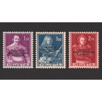 Są to obiegowe znaczki szwajcarskie z 1941 roku, przedstawiające postacie historyczne lub nawiązujące do historii kraju, z nadrukami „COURRIER DU BUREAU INTERNATIONAL D'ÉDUCATION” („Poczta Międzynarodowego Biura Oświaty”).