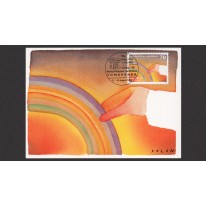 Na znaczkach i kartach widnieją: ręka trzymająca tęczę i ręka sięgająca do tęczy.