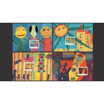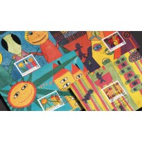 Na znaczkach i kartach przedstawiono prace zgłoszone do międzynarodowego konkursu rysunku dziecięcego.