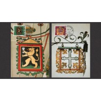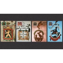 Na znaczkach i kartach widnieją szyldy, kolejno: