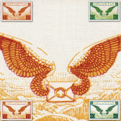 Na znaczkach widnieje uskrzydlony list symbolizujący pocztę lotniczą.
