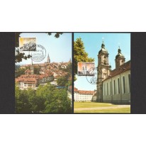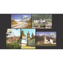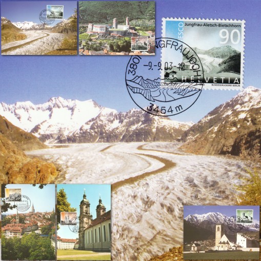 Znaczki promujące miejsca światowego dziedzictwa UNESCO w Szwajcarii.