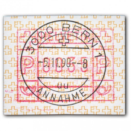 Kasownik pochodzi z Berna (kod pocztowy 3000) z pierwszego dnia obiegu.