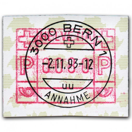 Kasownik pochodzi z Berna (kod pocztowy 3000) z pierwszego dnia obiegu.