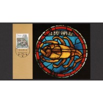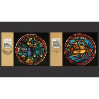 Na kartach widnieją witraże przedstawiające znaki zodiaku.
