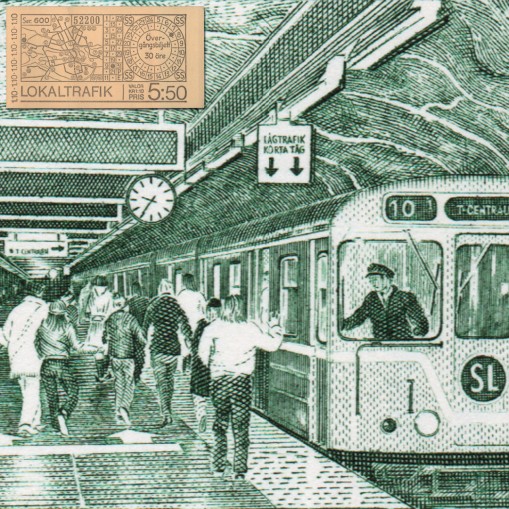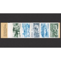 Seria w zeszyciku filatelistycznym prezentująca środki transportu publicznego.