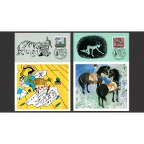 Znaczki na kartach maksimum upamiętniające 80. rocznicę urodzin szwedzkiej pisarki Astrid Lindgren.