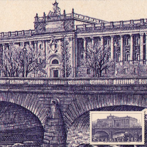 Na znaczku widnieje budynek szwedzkiego parlamentu.
