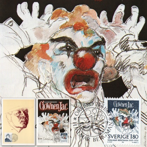 Znaczki na kartach maksimum upamiętniające setną rocznicę urodzin szwedzkiego pisarza i dramaturga Hjalmara Bergmana.