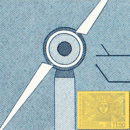 Znaczki promujące odnawialne źródła energii, kolejno: