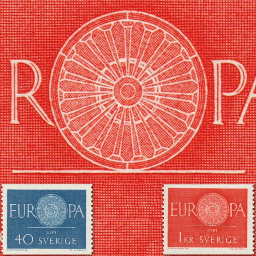 Znaczki tej emisji mają rozpoznawalny wśród filatelistów dizajn koła od rzymskiego dyliżansu pocztowego, będący projektem fińskiego grafika (Pentti Rahikainen). 19 szprych koła odpowiadało liczbie krajów zrzeszonych wówczas w CEPT, a samo koło stanowi literę „O” wyrazu EUROPA.