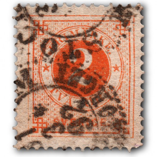 Kasowany numeryczny znaczek obiegowy o nominale 2 öre.