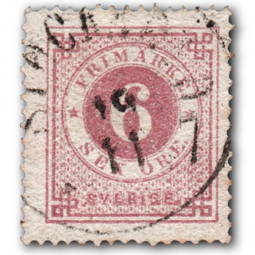 Kasowany numeryczny znaczek obiegowy o nominale 6 öre.