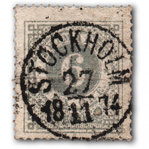 Kasowany numeryczny znaczek obiegowy o nominale 6 öre.
