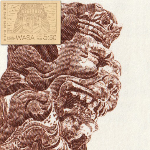 Na znaczkach widnieją rzeźbione elementy statku, a także jego herb i widok okrętu z 1628 roku.