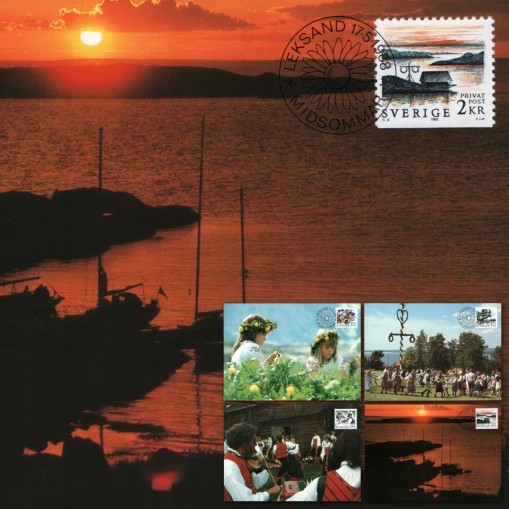 Znaczki na kartach maksimum celebrujące szwedzkie tradycje związane z przesileniem letnim.