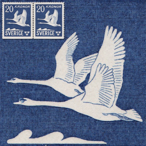 Na znaczkach w parce widnieją łabędzie nieme w locie.