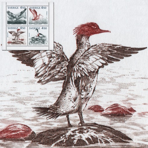 Znaczki w arkuszu promujące ochronę przyrody na wybrzeżu Bałtyku.