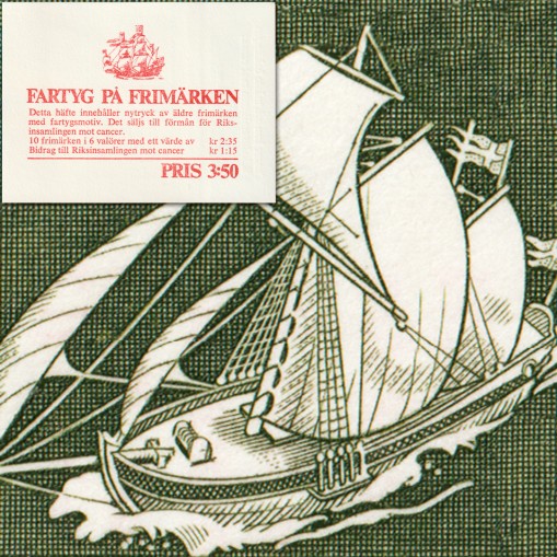 Powtórny druk znaczków z 1936 roku, na których przedstawiono szwedzkie żaglowce, kolejno: