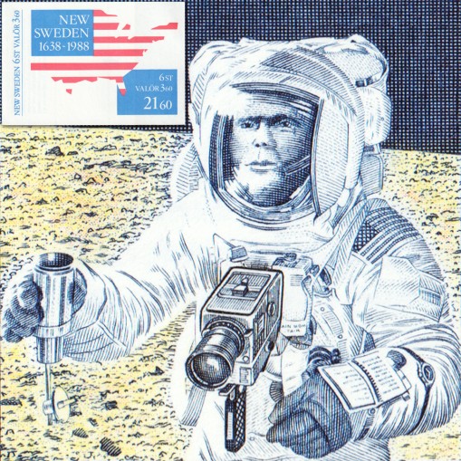 Znaczki upamiętniające 350. rocznicę założenia osady Szwedów w Stanach Zjednoczonych nazwanej New Sweden (pol. Nowa Szwecja).