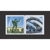 Na znaczkach widnieją kolejno: fontanna z rzeźbą Posejdona w Göteborgu oraz kolejkę w wesołym miasteczku Liseberg w Göteborgu.