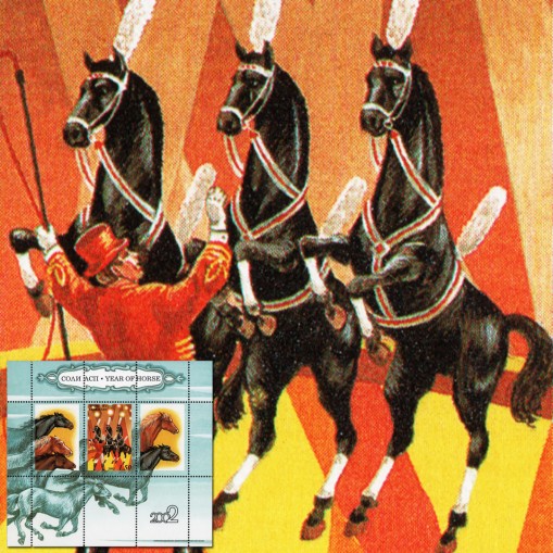 Na znaczku widnieją konie występujące w cyrku.