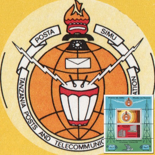 Seria w bloku upamiętniająca pierwszą rocznicę powstania tanzanijskiego przedsiębiorstwa poczty i telekomunikacji.
