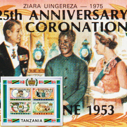 Na znaczkach widnieją kolejno: książę Filip i prezydent Nyerere, prezydent i para królewska, logo obchodów jubileuszu i flagi krajów Wspólnota Narodów (ang. Commonwealth) oraz ceremonia koronacji Elżbiety II.